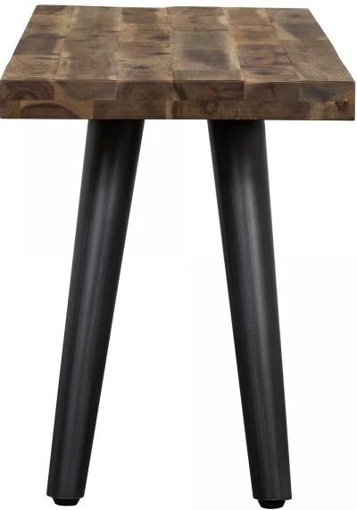 The Armen Living Cusco Acacia Rustic Bench is a multifunctional piece; and easily fits into your dining room, living room or at the end of your bed. The bench is 55 inches wide and features a beautiful antique acacia finish. The metal legs give this bench a modern touch without compromising its warm rustic aesthetic. The Cusco collection expands to multiple rooms in your home. Coordinating bedroom, living room and dining room pieces not included. All available in an antique acacia finish with black metal accents.
