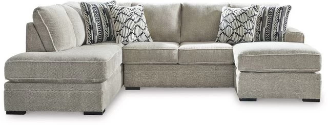Includes 2 pieces: right-arm facing corner chaise and left-arm facing sofa chaise