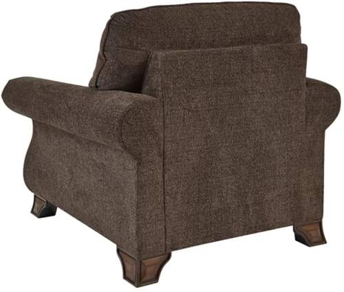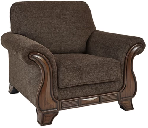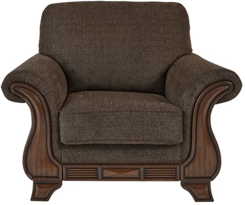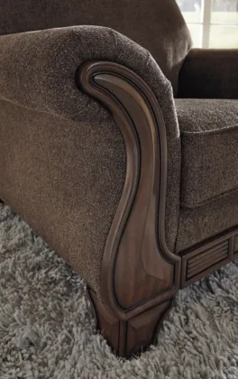 Exposed feet, rail and arm panels with faux wood finish