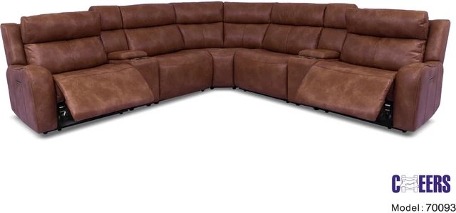 7pc includes RAF and LAF power recliners, 1 armless chair, 1 armless recliner, 1 wedge seat and 2 straight storage consoles with USB.