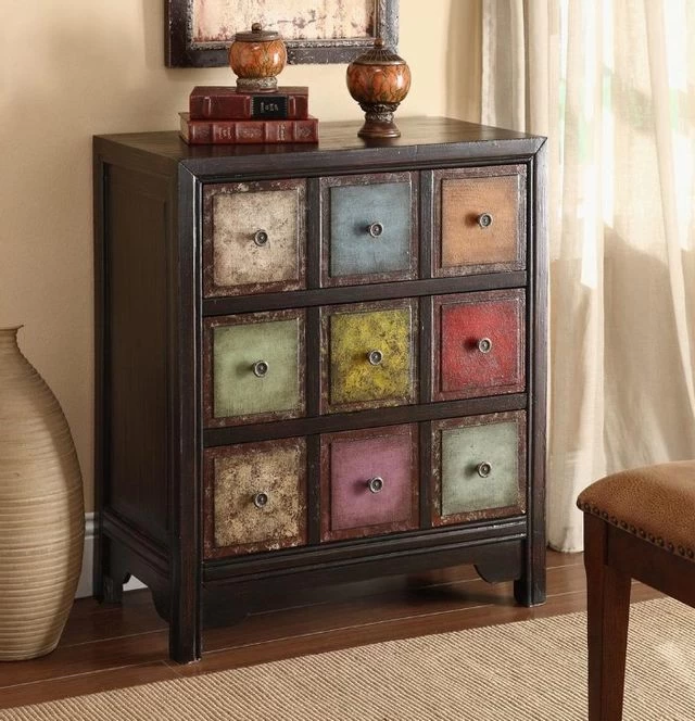 Conde Weathered Multicolor finished drawer fronts with dark neutral frame.