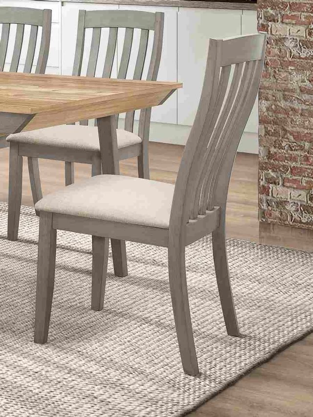 Two-toned in soft grey with natural wood finish gives a striking contrast to your home decor