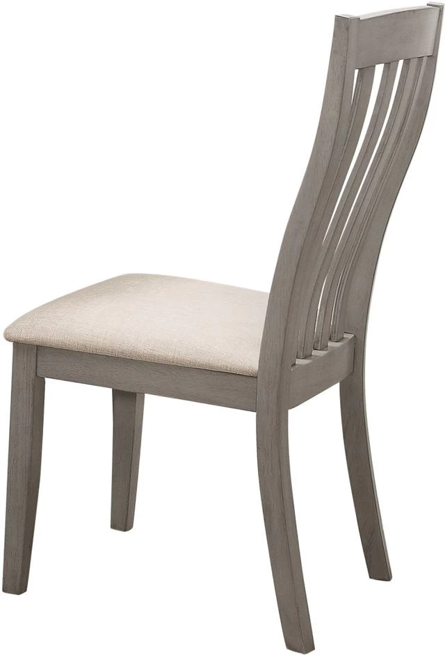 Classy, cozy, and stylish, this wooden dining chair has it all.Crafted of Asian hardwood, this top-quality piece is made with lasting durability in mind.The two-tone design allows it to blend effortlessly with a variety of color palettes.The seat is topped with plush padding and soft, linen-like upholstery for a luxurious level of comfort.The curved, slatted back offers exceptional support for hours upon hours of casual dining enjoyment.