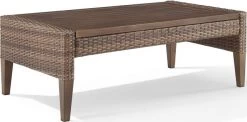 A slatted steel tabletop with a hand-painted wood finish adds more durability than a standard wood top