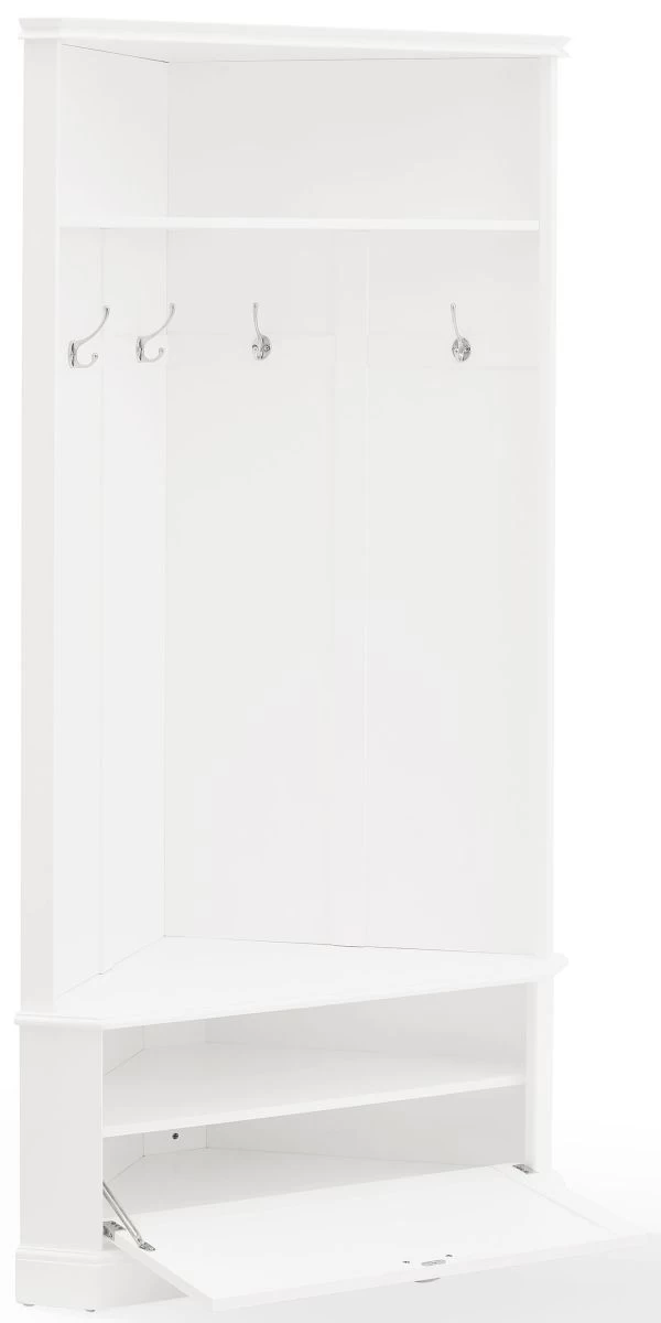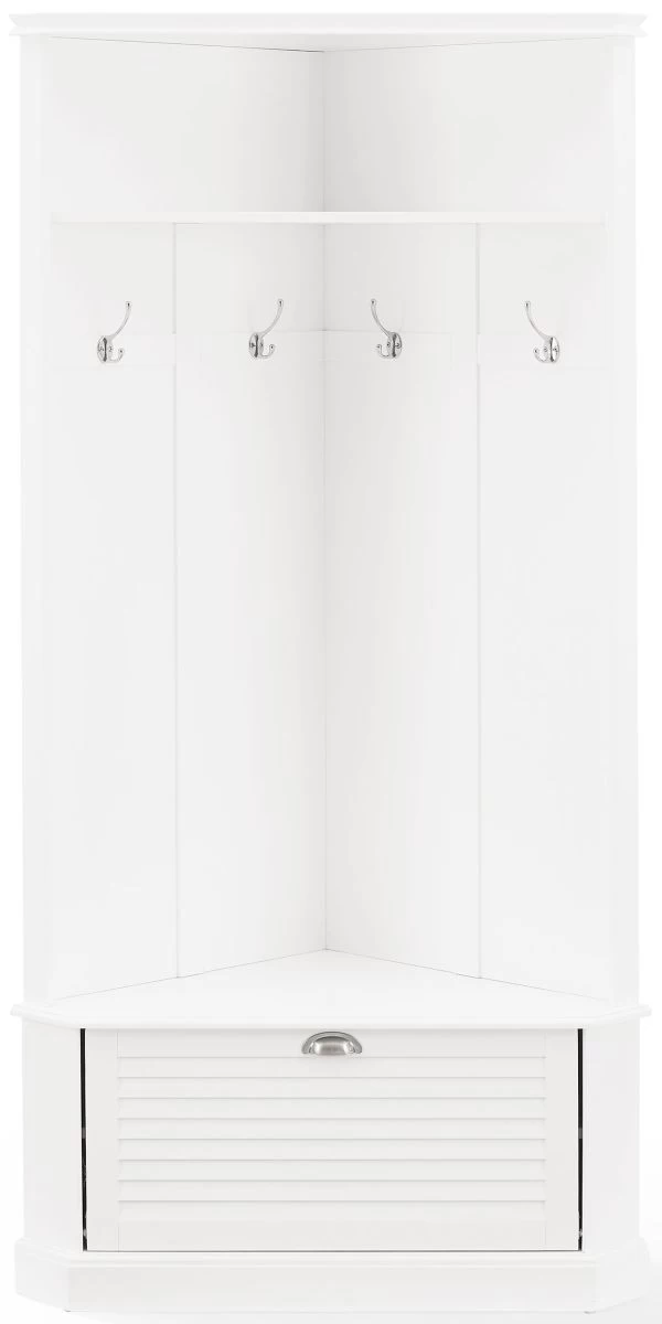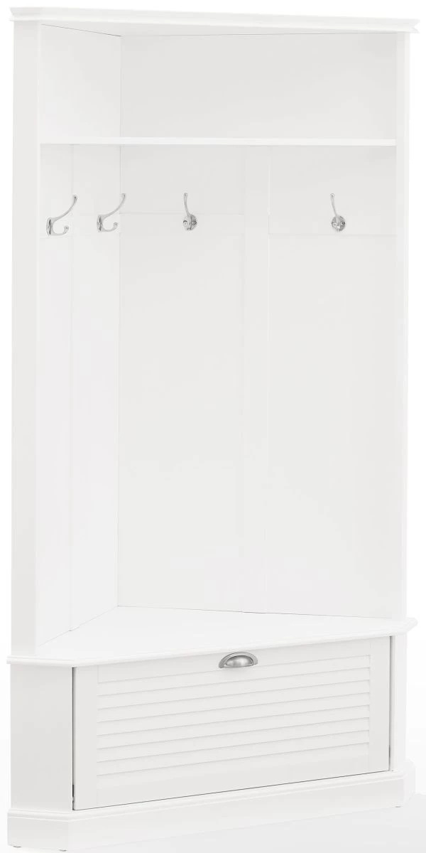 This hall tree’s corner-hugging design makes it the perfect coat rack and landing zone for any size entryway. With hooks for hats and a lower cabinet for shoes, the Ellison corner hall tree offers stylish storage wherever it goes.