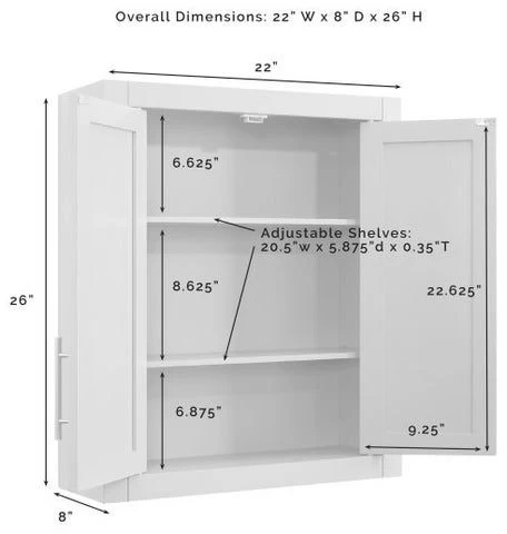 Two adjustable and removable shelves, each with a 15lb weight limit