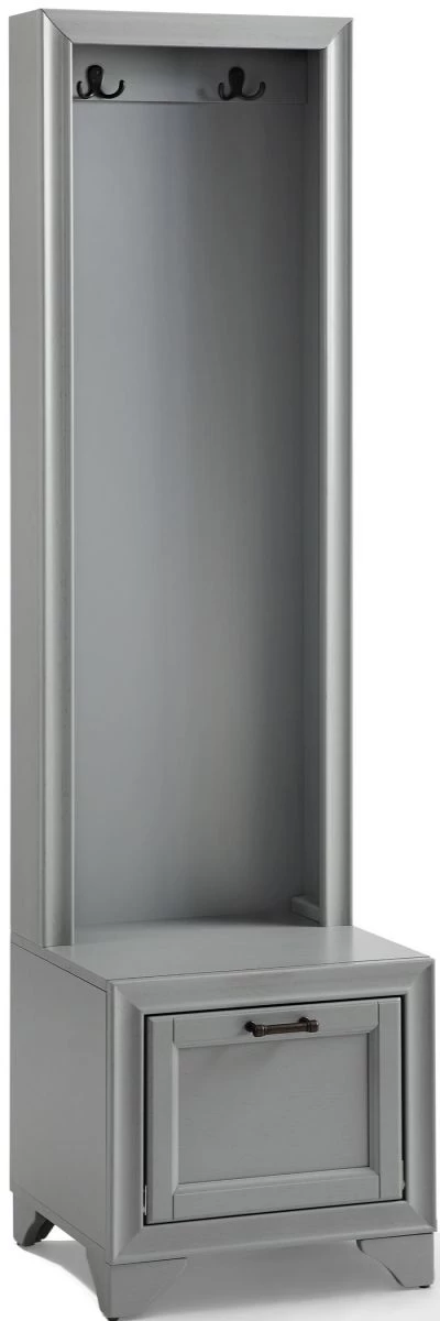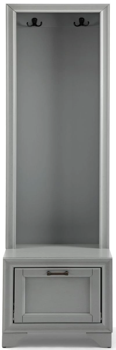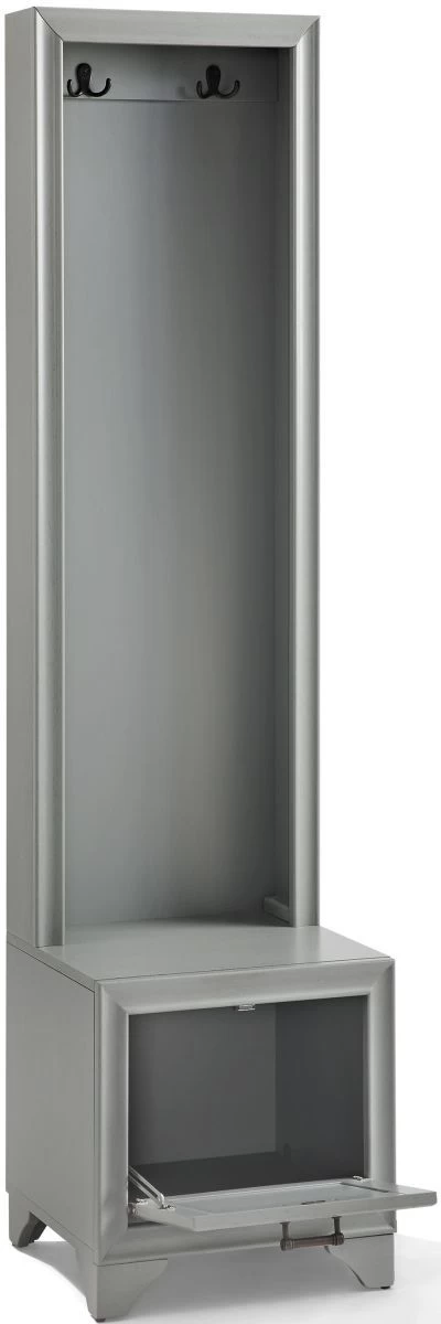 A spacious lower compartment has a hinged fold-down door with magnetic closure just right for storing shoes at the end of the day. The lower cabinet also creates a seating area or landing zone, making the Tara hall tree your go-to for home organization.