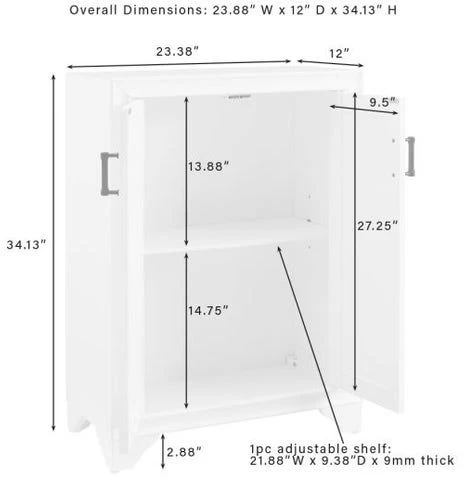 Featuring an adjustable shelf that adapts to your needs, you can use this item as a small pantry, entryway storage, or bathroom cabinet. Great for smaller spaces, the Tara Accent Cabinet is the home organization tool you’ve been looking for.
