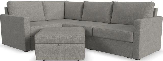 Storage ottoman top lifts open for an ample space to store belongings, and perfectly bumps up against the sectional to make a chaise lounge or can stand alone