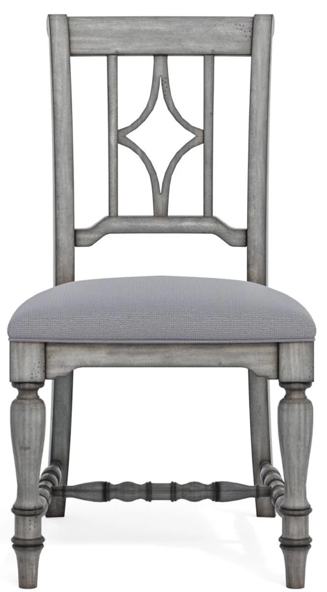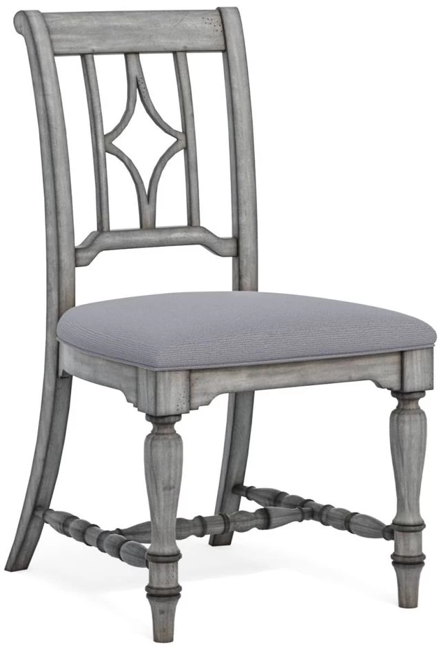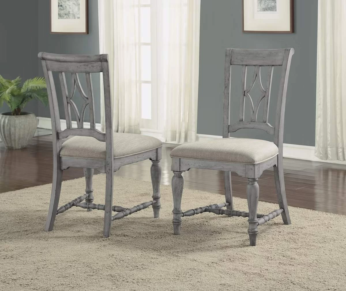 Create a lasting impression within your home with the Plymouth upholstered dining chair. The chair sports a whitewash finish and a diamond-shaped detail on the back panel.