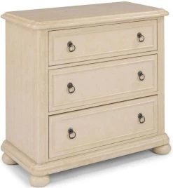 Crafted of solid mahogany and engineered wood with a silvery grey painted finish