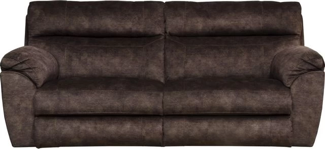 The Sedona Mocha Power Headrest with Lumbar Power Lay Flat Reclining Sofa features a power recliner/power headrest and comfort control panel technology. The soft, thick, printed and embossed suede fabric paired with the comfort coil seating featuring Comfor-Gel creates an extremely comfortable seat.