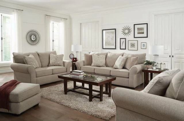 Get ample seating for the whole family with the Maddox collection from Jackson Furniture. With the rolled arms, block legs, and neutral colors, your home gets the quaint yet stylish vibe you love. The sturdy steel frame, soft polyester upholstery, Comfort Coil seat construction, and Comfor-Gel cushioning combine into support that lasts for years. Welcome to the collection that you’ll never want to replace; welcome to the Maddox