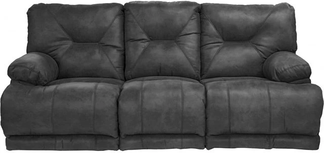 With this Voyager power-reclining sofa, 3 is no longer a crowd. Enjoy the company with exclusive triple-seat, lay-flat reclining on supple upholstery finished in reinforced contrast stitching and subtle channel tufting. Feeling cozy yet? Experience even more pampering with a built-in drop-down table that conveniently holds your favorite beverages and snacks. So, sit back and relax without breaking a sweat; the power reclining will get you and your loved ones lounging in lush, casual seating comfort.