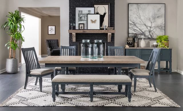 6pc Includes Standard Height Table, 4 Side Chairs and Matching Bench