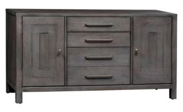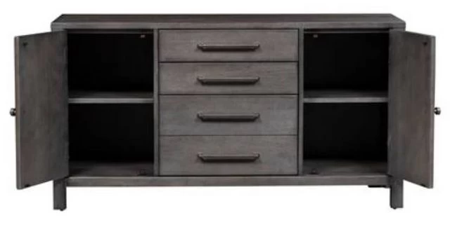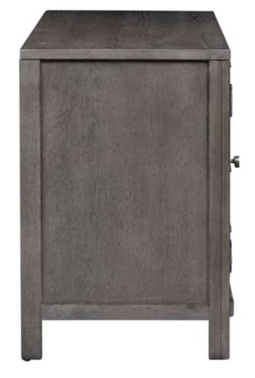 This piece is available in an alternative finish, sure to be the perfect addition to any home. The dusty charcoal finish with heavy distressing accompanied by washed brass elongated hardware ties any space together effortlessly.