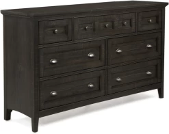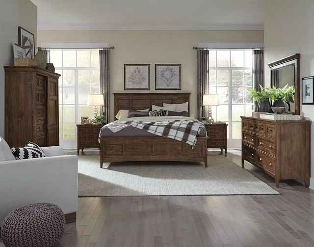 Retreat to Bay Creek and enjoy a yummy Toasted Nutmeg finish on Pine veneers and solids, accented by aged bronze hardware. Whether in a second home, a casual city abode or in the suburbs, this collection offers beaded, framed panel drawers over straight shaker inspired legs and plenty of drawers to stow your togs. The rectangular panel bed offers a tailored respite as well a storage rails alternative.