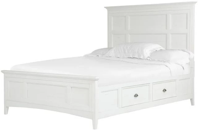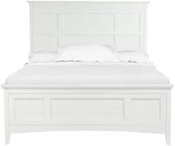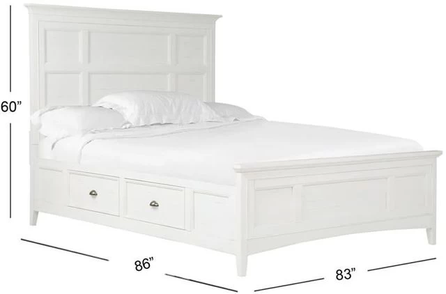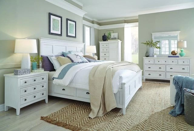 A soft Chalk White finish on Pine veneers and solids creates a relaxed beachy feel in any bedroom with Heron Cove. A high back beaded framed panel bed lends shaker appeal and is available with hidden rails storage. Straight legs support the straight lined chests with raised beaded trim for cottage appeal. Come home to Heron Cove!