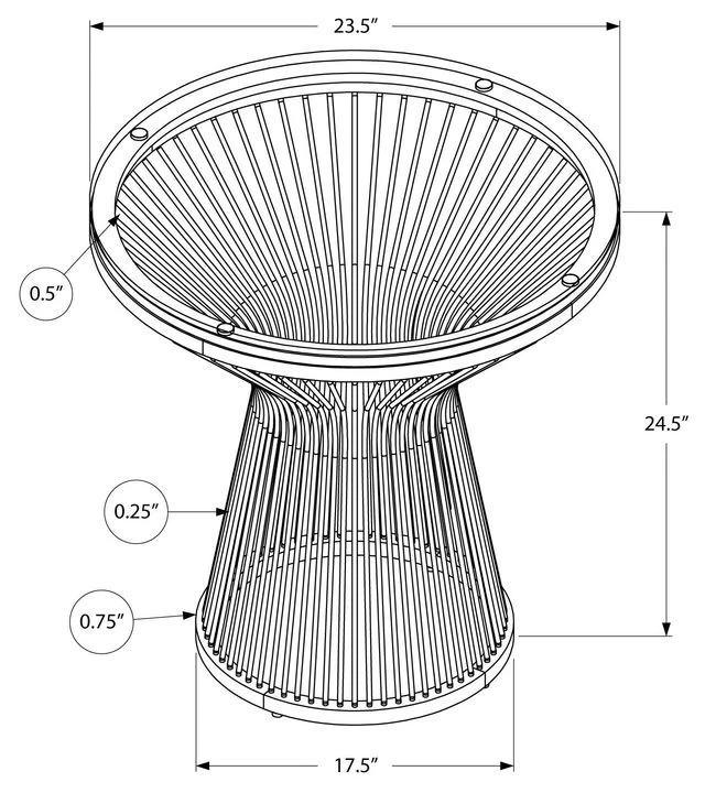 Strong, open hourglass wire frame and a compact size accent table that will not overwhelm a space