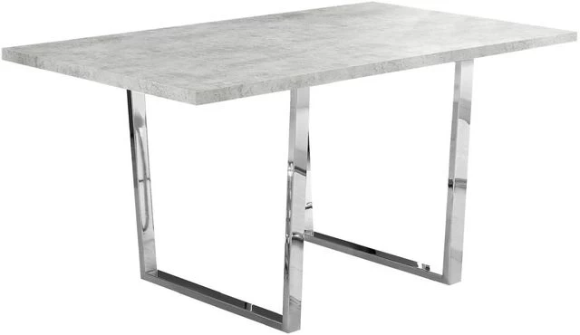 Welcome to contemporary at its finest! In a trendy grey cement finish, this is the most versatile kitchen table for casual or formal dining for up to 4 people. Thanks to U-shaped chrome metal legs, the thick rectangular table is extra sturdy and can fit in just about any space – Small home, condo or apartment, no problem!
