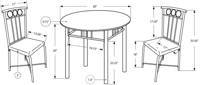| 2 Chairs | 17W x 35.5H x 17L, 11 Lbs. |