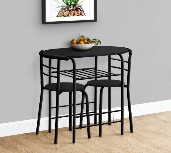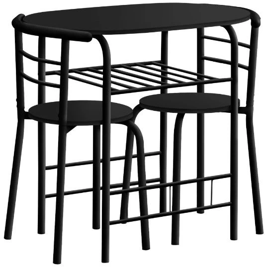 Stylishly finished in a modern black laminate seat and table top combined with black metal, this set blends with a variety of color schemes.