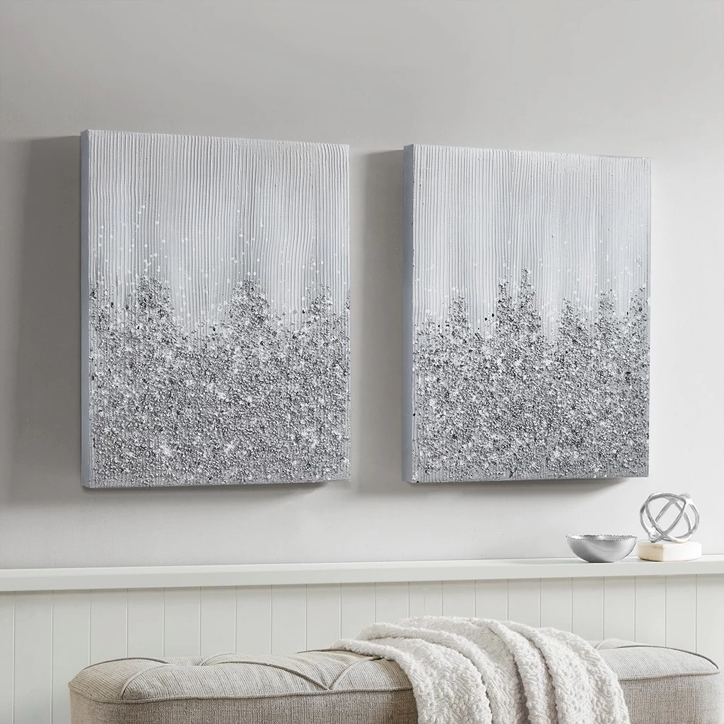 Hand brushed canvas art 2 piece set in gradient abstract pattern.