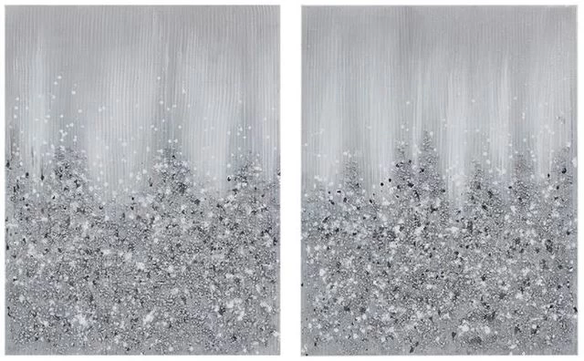 Hand embellished rock and stone detailing with silver glitter finish for rich sheen and luster.