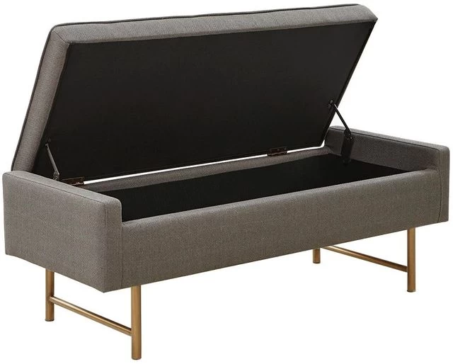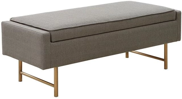 Complete your living room or bedroom with the Madison Park Heath Accent Bench. Upholstered in a rich grey fabric, this accent bench features bronze metal legs that create an elegant contrasting look. Incorporate this accent bench into your home décor to give your space a simple, yet handsome allure.