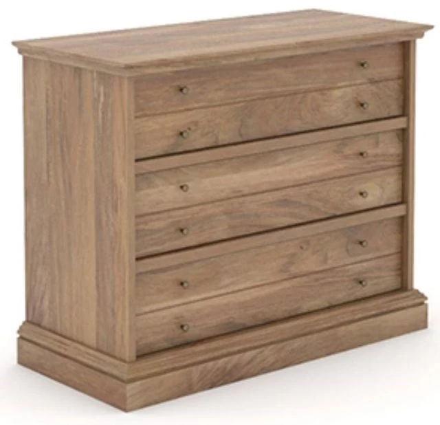The spacious top surface of this 3-drawer dresser can be used to display home décor items like decorative plants and picture frames or to accommodate up to a 40” TV weighing 50 lbs. or less for endless hours of entertainment. Assembly is easy with a T-lock drawer system that allows for a quicker assembly. This wood chest of drawers looks good no matter where it stands in your home – the bedroom, your office or in the living room. Finished in Sindoori Mango®, this bedroom furniture is the solution to all your storage woes.