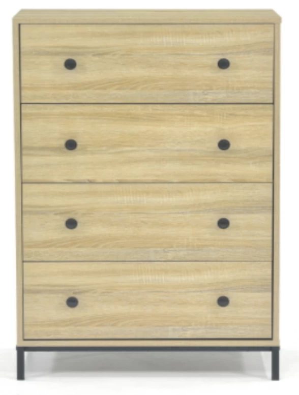Are you running out of storage space in your bedroom? Does your existing bedroom furniture need help? No worries. We’ve got just what you need. Create the additional storage space you need while adding the style that you love with this 4-drawer chest from the North Avenue collection. This wood chest of drawers features four spacious drawers that open and close on smooth metal runners creating a convenient spot for you to stow away a variety of different items like stacks of denim jeans and button up flannel to comfy pajamas and your collection of t-shirts. The large top surface provides you with additional space to store and display items like a small mirror, decorative plants, bottles of cologne, and photos of your family and friends. There is a place for all of your things! Additional features that this 4 drawer chest includes is a durable, black metal base. Finished in Charter Oak and detailed with attractive hardware, this bedroom dresser is the solution to your storage woes.