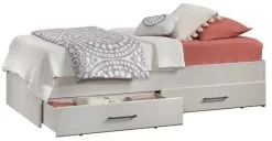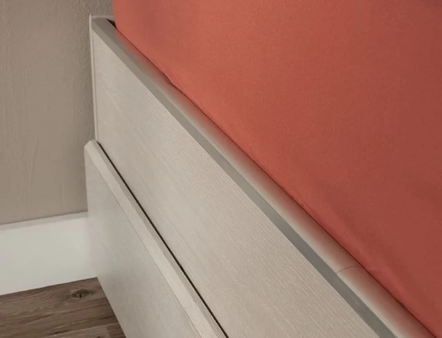 Contain your clutter and chaos – this twin bed with drawers features convenient under bed storage options with two large drawers that create an easy access space for you to stow away a variety of different items. Store your stacks of t-shirts and your collection of shoes, or your board games and an extra set of sheets and blankets in this twin storage bed. You can find a place to store it all! This mates bed accommodates a twin-sized mattress to give you a completed look, whether it is in your bedroom or down the hallway in the guest room. This twin bed with storage drawers adds cozy style and simplistic beauty no matter where it rests. Finished in Glacier Oak™ with tapered feet and chamfered edges, this mates bed will have you snoozing in style in no time.