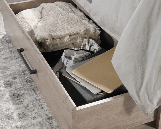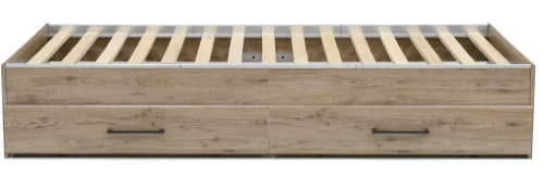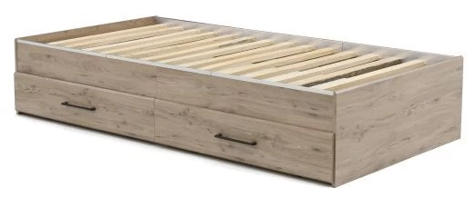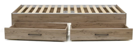 Your bedroom deserves to look as stylish as the rest of the house. Wake up your sleepy bedroom décor when you add the charming good looks and functional design of this mates bed from the Summit Station collection. Contain all your bedroom clutter and chaos – this twin mates bed features convenient under bed storage options with two large drawers with easy rolling casters. These storage drawers create an easy access space for you to stow away a variety of different items like stacks of t-shirts and your collection of shoes to board games and spare sheets and blankets. These handy drawers can be used on either side of the bed or one on each side – whichever fits you best! This twin storage bed accommodates a twin-sized mattress to give you a completed look whether it’s in the kid’s bedroom or down the hallway in the guest room. Finished in Laurel Oak and detailed with chamfered edges and attractive hardware, this twin bed with storage drawers will have your bedroom looking better than ever!