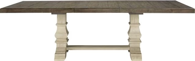 Table extends to 103″ by pulling both ends and dropping in leaf