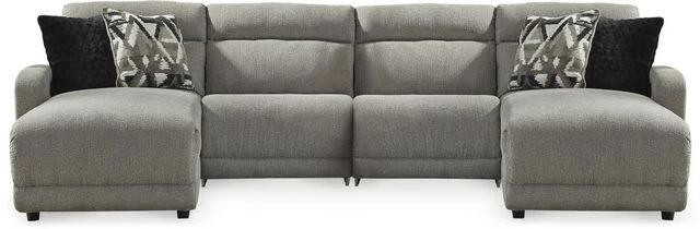 Includes 4 pieces: left-arm facing power reclining back chaise, 2 armless power recliners and right-arm facing power reclining back chaise