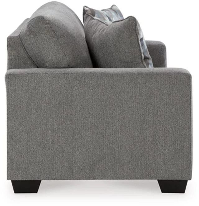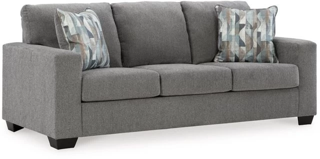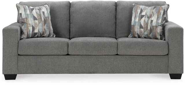 Distressed abstract toss pillows bring a fresh breath of contemporary style while accentuating the sofa’s color. A pullout queen memory foam mattress is an added comfort for overnight guests.