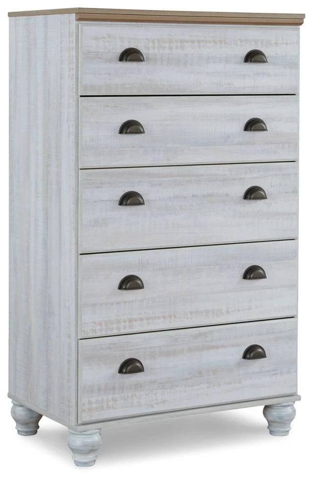Drawer interiors are lined with a replicated linen design for a clean, finished look
