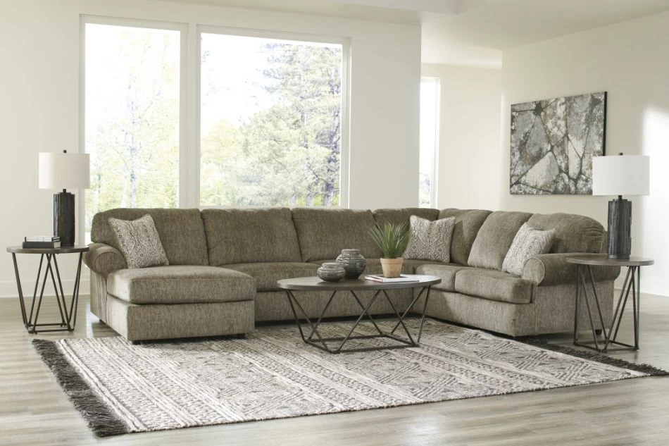 3-piece sectional includes LAF corner sofa, armless loveseat, and RAF chaise