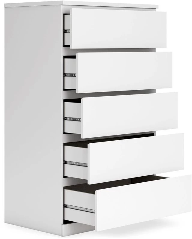 Five smooth-gliding drawers with ball-bearing side glides; vinyl-wrapped sides and back for durability