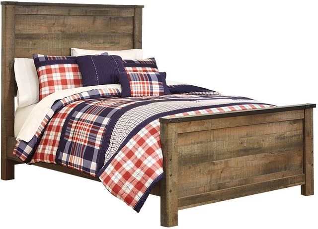 Whether she loves horses or he’s a cowboy at heart, Trinell full panel bed matches their authentic sense of style. Rustic finish, plank details and nailhead trim are an homage to reclaimed barn wood, making for a sophisticated, vintage-chic look. Mattress and foundation/box spring sold separately.