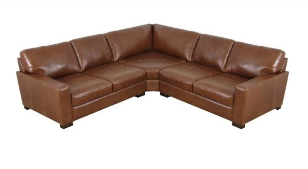Leather sectional includes left arm loveseat, right arm loveseat and corner seat.