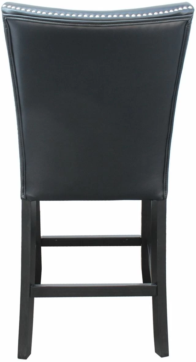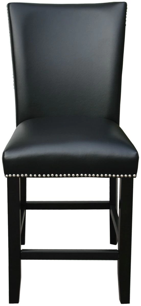 The simple shape is covered with faux-leather that’s accented by a single row of silver nailhead trim. Deep padding adds comfort to the squared seat and backrest. The interior frame is made from solid hardwood with an espresso finish across the legs, stretchers, and footrest.