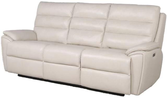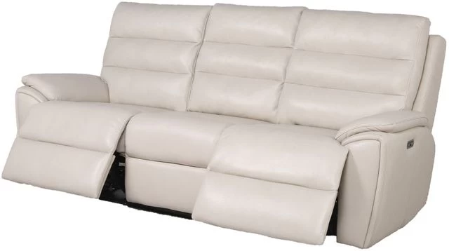 Contemporary styling in a modern ivory leather application, this Duval three-piece power-power reclining group features both power footrest and articulating power headrest for the ultimate in comfortable seating. Horizontal channeled backs add a modern touch and additional padding while top-grain leather adds a luxurious touch that is durable, comfortable and beautiful.