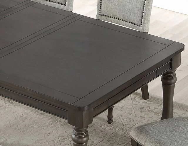 Linnett dining takes traditional dining styling and adds a modern twist to create a collection that is as comfortable as it is stylish. A choice of upholstered or wooden back side chairs gives you the option of mixing and matching the collection to suit your own personal style. The table extends to a full 84 inches with leaf to seat up to eight.