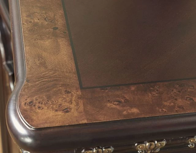 Constructed of Cherry and Mappa Burl veneers, poplar solids and man-made components
