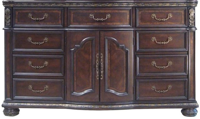 Large-scaled yet romantic bedroom collection from Steve Silver Company. Poster bed is available in king or queen sizes and is complemented by several options in storage pieces. Crafted from cherry and mappa burl veneers and poplar solids, Monte Carlo features a multi-step rich, lustrous cocoa finish.