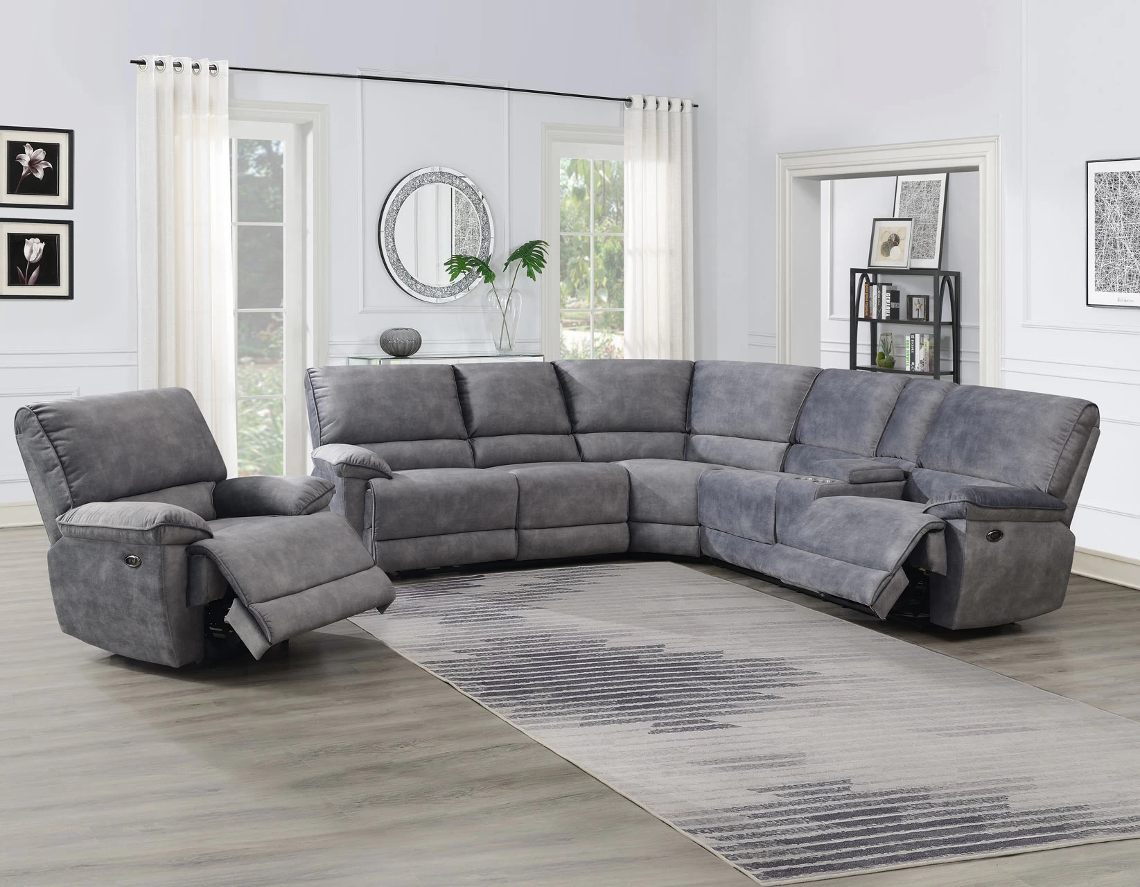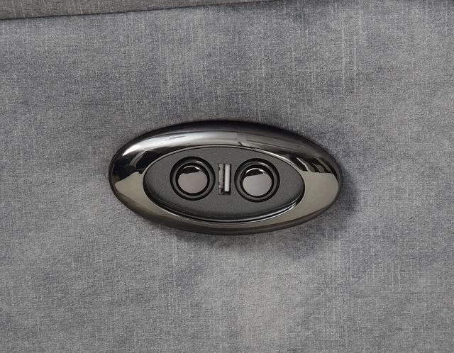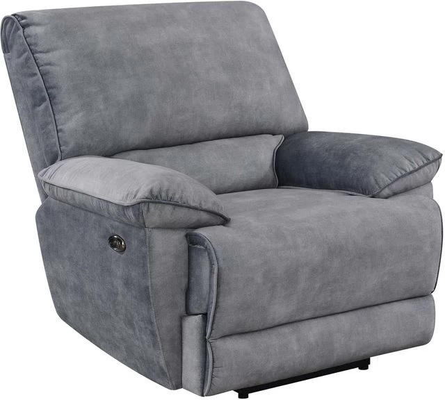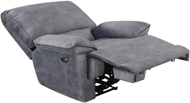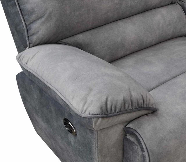 Simone offers a seat in comfort with this Power Recliner offering extra-wide seating and a plush fabric in a soft-touch grey application. The power control station on the outside arm offers a USB recharging port while the power footrest and pocket coil seating assures everyone will be comfortable for the big game.